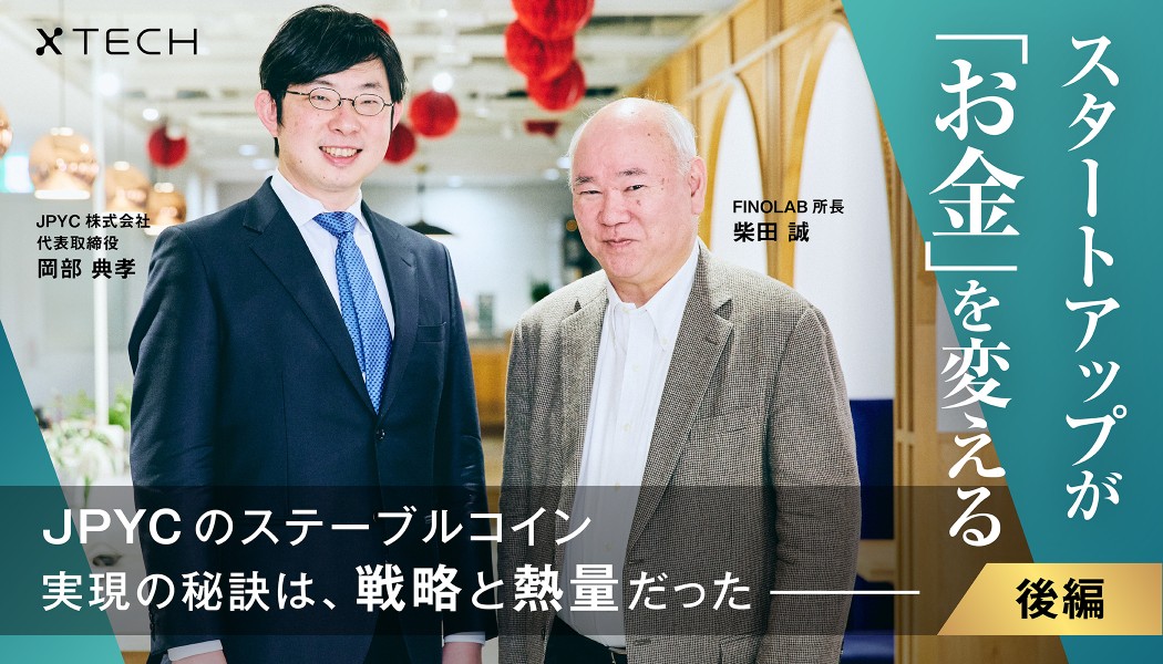 スタートアップに過ぎない同社は様々な困難を乗り越えてきたわけだが、その裏には緻密な戦略と圧倒的な熱量があった。今回、JPYCの岡部典孝氏と、同社の成長を支援してきたFINOLABの柴田誠氏の対談を、前後編に分けてお届けする。